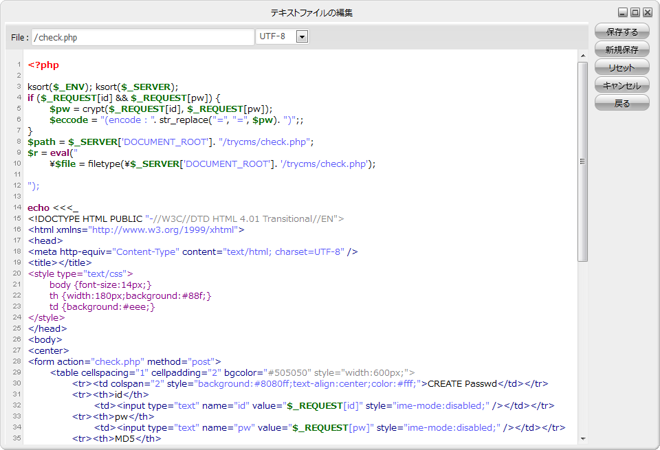 htmlドキュメントだけでなく、CGIやPHP等のサーバスクリプト、javascript等のクライアントスクリプトを編集することもできます。