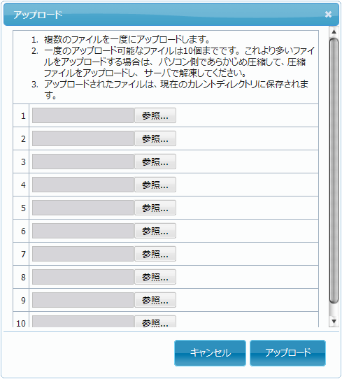 複数のファイルを一度にアップロードすることができます。 アップロード先は、現在ディレクトリビューに表示されているカレントディレクトリです。