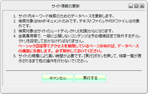 - サイト内コンテンツのデータベースを最新の状態に更新します。