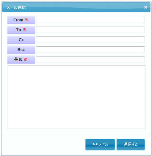 通常は、ログインされたメンバーのメールアドレスがFromに、署名が設定されている場合は署名も挿入されてポップアップ表示されます。