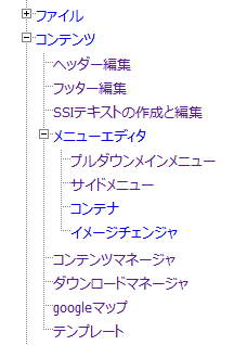 コンテンツマネージャは、サイトの構造を正確なツリーで表示して、どのhtmlファイルでも編集が可能です。