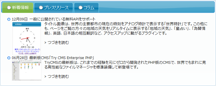 記事を書くだけなら「ニュース」機能で十分ですが、こちらは動的ページと呼ばれ、実際には存在しないページを、ユーザの呼び出し時に生成して表示しています。
